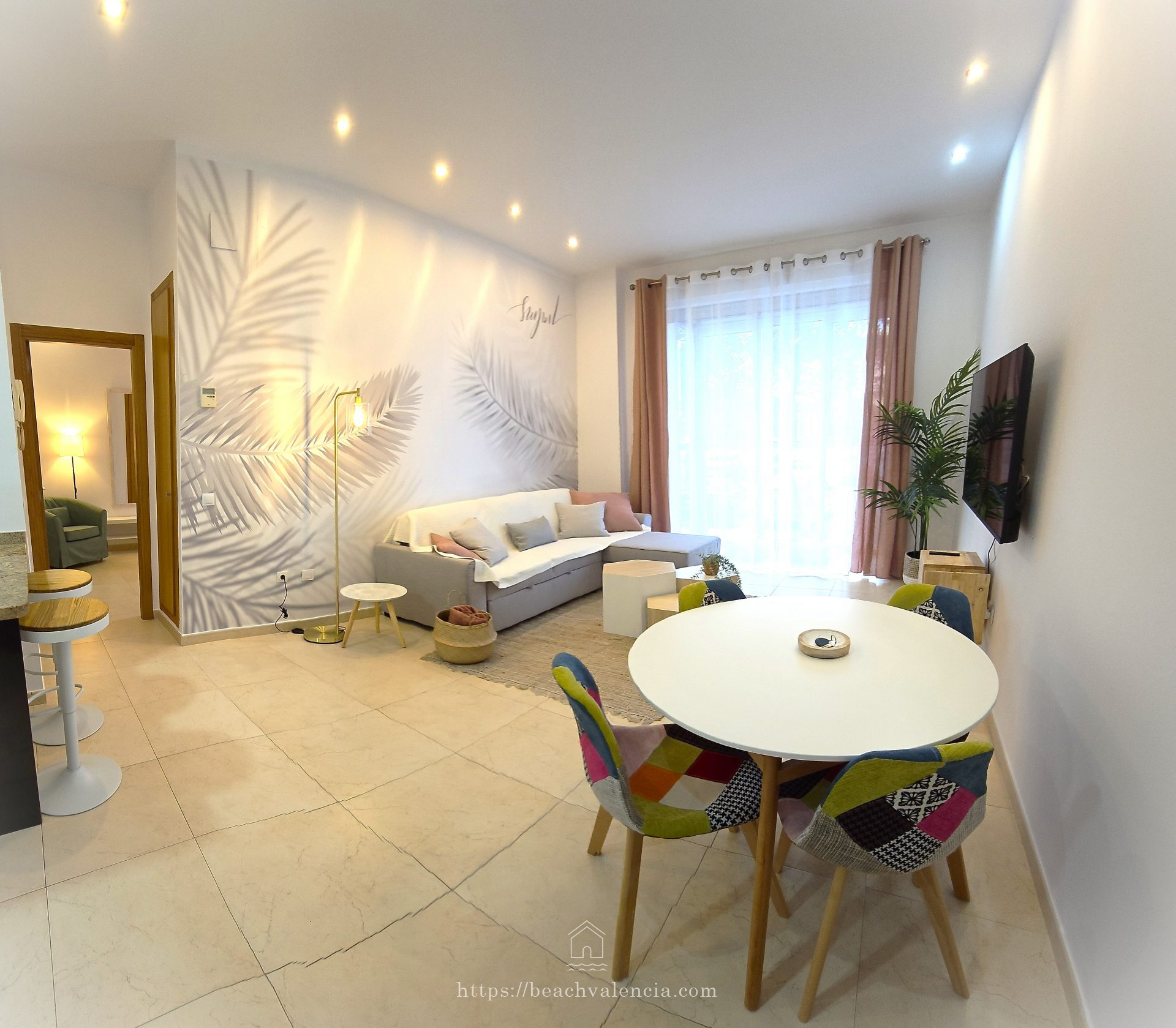 Our apartments are located close to supermarkets, restaurants, pharmacies, and public transportation. Additionally, the beaches of Malvarrosa and Patacona are just a few steps away.